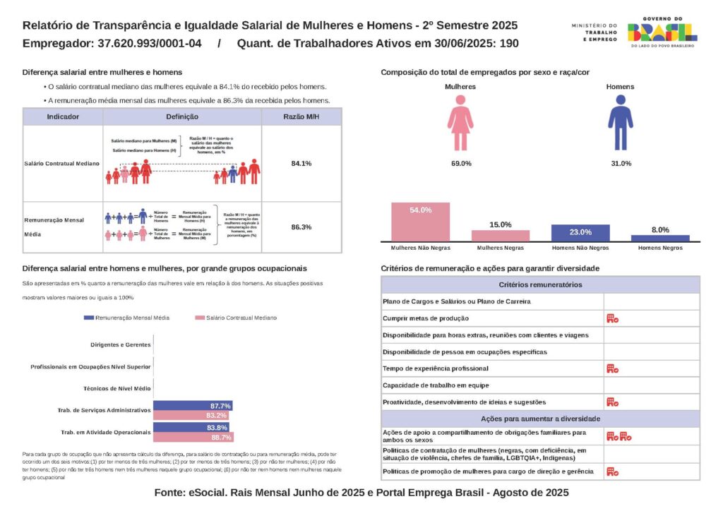 Acreditamos que evolução também se constrói com dados. Por isso, compartilhamos nosso Relatório de Igualdade Salarial do 2º semestre de 2025 — reforçando o cuidado com quem caminha ao nosso lado todos os dias. 💼
